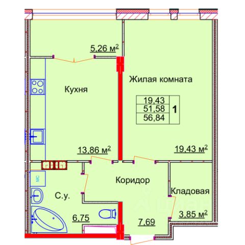 Продаётся 1-комнатная квартира в строящемся доме (Лежневская, 98А), срок сдачи: II-кв. 2027, общей площадью 56.84 кв.м., на 3 этаже. Новый жилой комплекс "Альфа Центавра" от застройщика "ПК КСК" расположен по адресу: г. Иваново, Лежневская улица.