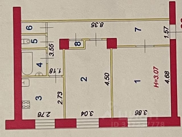 Общая площадь квартиры: 50,8 кв.м.;