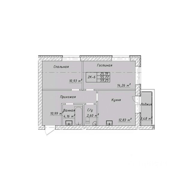 Продаётся 2-комнатная квартира в строящемся доме (Литер А), срок сдачи: IV-кв. 2026, общей площадью 59.26 кв.м., на 8 этаже. Новый жилой комплекс "Новая Дерябиха 4" от застройщика "ГК СМУ 1" расположен по адресу: Ивановский район, деревня Дерябиха.