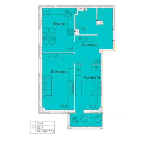 Продаётся 2-комнатная квартира в строящемся доме (Дом 1), срок сдачи: IV-кв. 2026, общей площадью 63.1 кв.м., на 2 этаже. Новый жилой комплекс "Капучино" от застройщика "ГП Квартал" расположен по адресу: г. Иваново, Велижская улица.