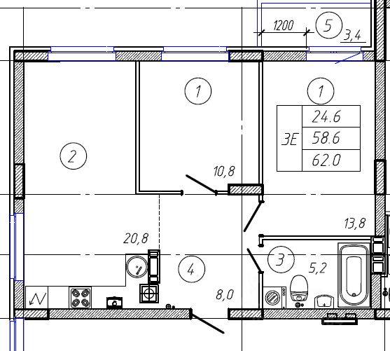 - Комнаты изолированные,общей площадью 38,2 кв.м, просторная кухня.