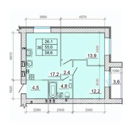 • ✅ Минимальная площадь: 57,4 м²