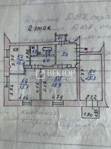 Общая площадь - 58,6 м