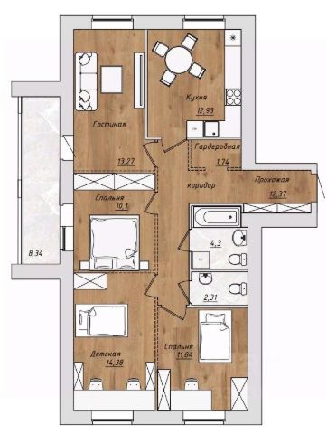 Продаётся 4-комнатная квартира в строящемся доме (Дом 1), срок сдачи: III-кв. 2027, общей площадью 87.41 кв.м., на 7 этаже. Новый жилой комплекс "Легенда" от застройщика "СДК Алмаз.Квартиры" расположен по адресу: г. Иваново, Инженерная улица.