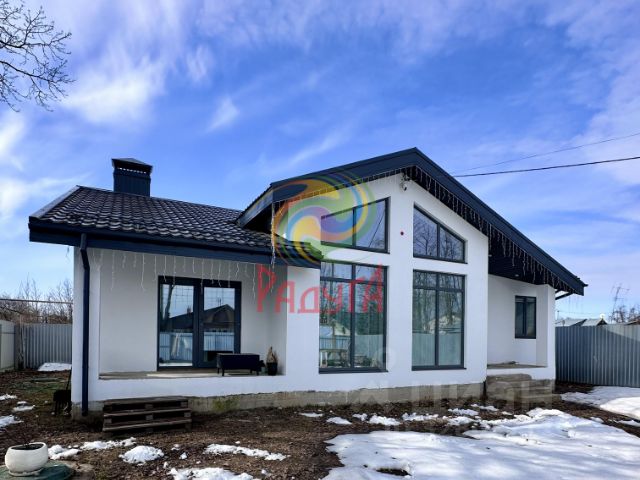 Внутри: большая кухня-столовая с выходом на веранду 30 м² (лиственница, мебель, маркиза), 1 просторная спальня, 2 санузла, лофт с двумя спальными местами.