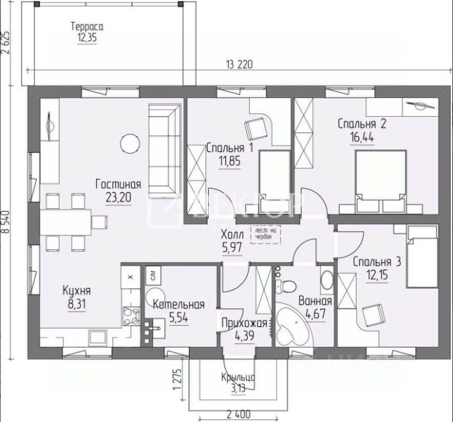 Агентство недвижимости "Радуга" предлагает к покупке просторный и комфортабельный коттедж.