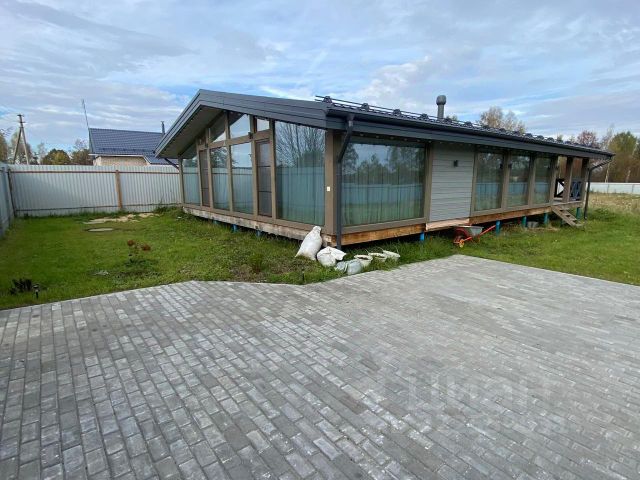 Внутри: большая кухня-столовая с выходом на веранду 30 м² (лиственница, мебель, маркиза), 1 просторная спальня, 2 санузла, лофт с двумя спальными местами.