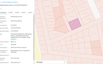 Земельный участок (н/п, ижс) площадью 650 кв. м, кадастровый номер 37:07:010342:30, местонахождение: Ивановская обл., Кинешемский р-н, г. Наволоки, ул. Фадеева, д. 35. Правообладатель Замонов Р.Г.