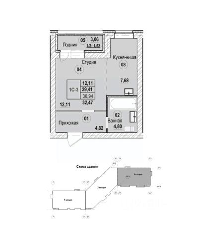 • ✅ Минимальная площадь: 32,6 м²