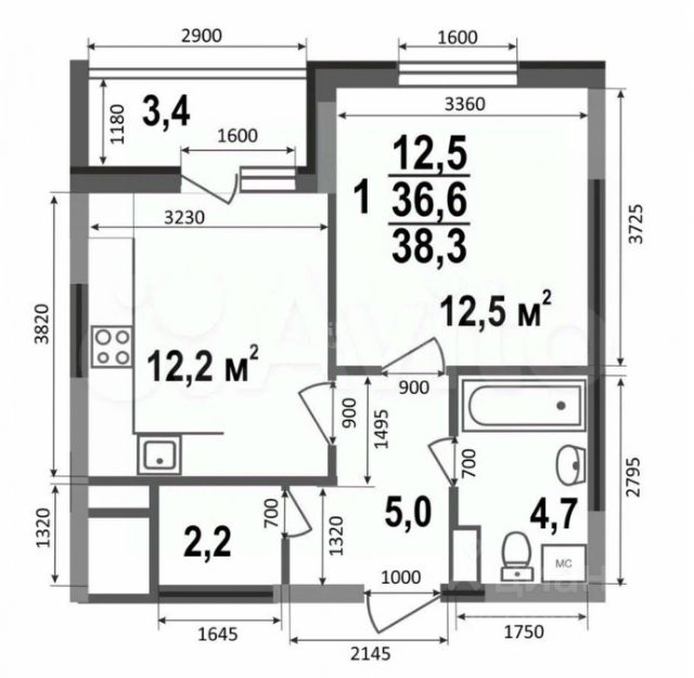 • Общая площадь: 41.20 м2