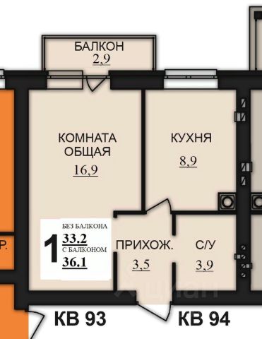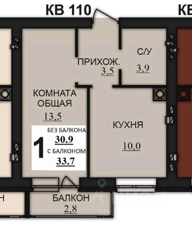 - Общая площадь 26 квм,