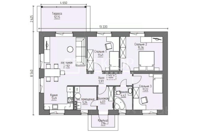 Лот:3417. Агентство недвижимости "Радуга" предлагает качественный, новый коттедж площадью 128 кв.м., 2024 года постройки в д. Калачево (рядом с ТЭЦ-3). Фундамент - буронабивные сваи + железобетонная плита. Материал стен - силикатный кирпич (38 см.). Утеплитель пенополистирол - 100 мм. Кровля - металлочерепица. Выполнена чистовая отделка, стяжка, штукатурка, шпаклевание стен. Выполнена разводка электричества, водоснабжения, отопления. Индивидуальное отопление, двухконтурный газовый котёл. Тёплые полы. Водоснабжение - скважина. Канализация - 2 выгребных ямы по 3 кольца. В стоимость входит забор по периметру, калитка, ворота. В пешей доступности магазины, детский сад, школа, остановка общественного транспорта. Хорошие подъездные пути. СЕЛЬСКАЯ ИПОТЕКА, полная сумма в договоре.