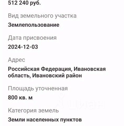• ✓ В базе Циан 1 земельных участков в квартале Балино в городе Иваново