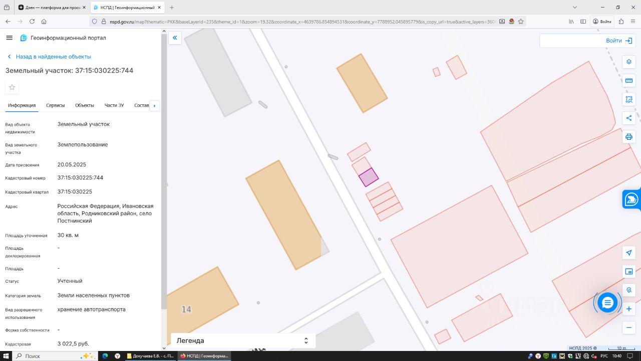 земельный участок с кадастровым номером 37:15:030225:744, площадью 30 кв.м., с разрешенным использованием "хранение автотранспорта", расположенный на землях категории "Земли населенных пунктов", по адресу: Ивановская область, Родниковский район, с. Постнинский.