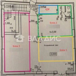 1 этаж — 100 м² (нарезан на блоки) (Блок 3 - наличие складского помещения под лестницей, Блок 2 - наличие мокрой зоны и возможность установки вытяжки)