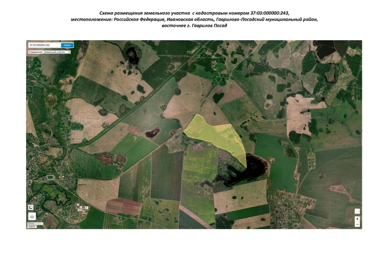 Земельный участок общей площадью 1154780 кв.м., из категории земель: "Земли сельскохозяйственного назначения", находящейся по адресу: Ивановская область, Гаврилово-Посадский район, восточнее г. Гаврилов Посад, с кадастровым номером 37:03:000000:243, вид разрешенного использования: для сельскохозяйственного производства