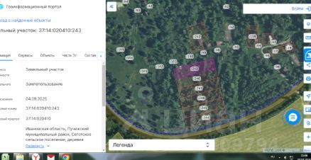 Земельный участок с кадастровым номером 37:14:020410:243 площадь 2500 по адресу Ивановская область, Пучежский муниципальный район, Сеготское сельское поселение, деревня Дынино
