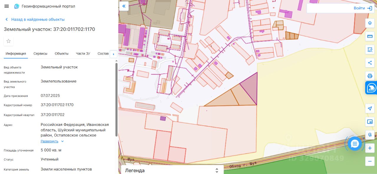 земельный участок с кадастровым номером 37:20:011702:1170, категории земель "Земли населенных пунктов", площадью 5000 кв.м, с разрешенным использованием "Для ведения личного подсобного хозяйства", расположенного по адресу: Ивановская область, Шуйский район, д. Остапово;