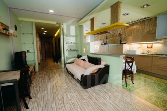 Стильная кухня-студия с панорамным остеклением совмещена с гостиной. Холодильник, посудомойка, микроволновка, удобный письменный стол.