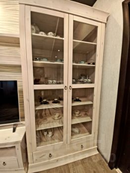 Гарнитур мебели из массива дерева расположен в комнате