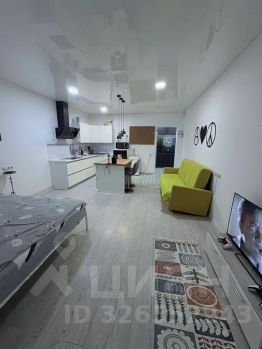 Квартира расположена на 13 этаже, из окон открывается красивый вид на город — особенно атмосферно вечером.