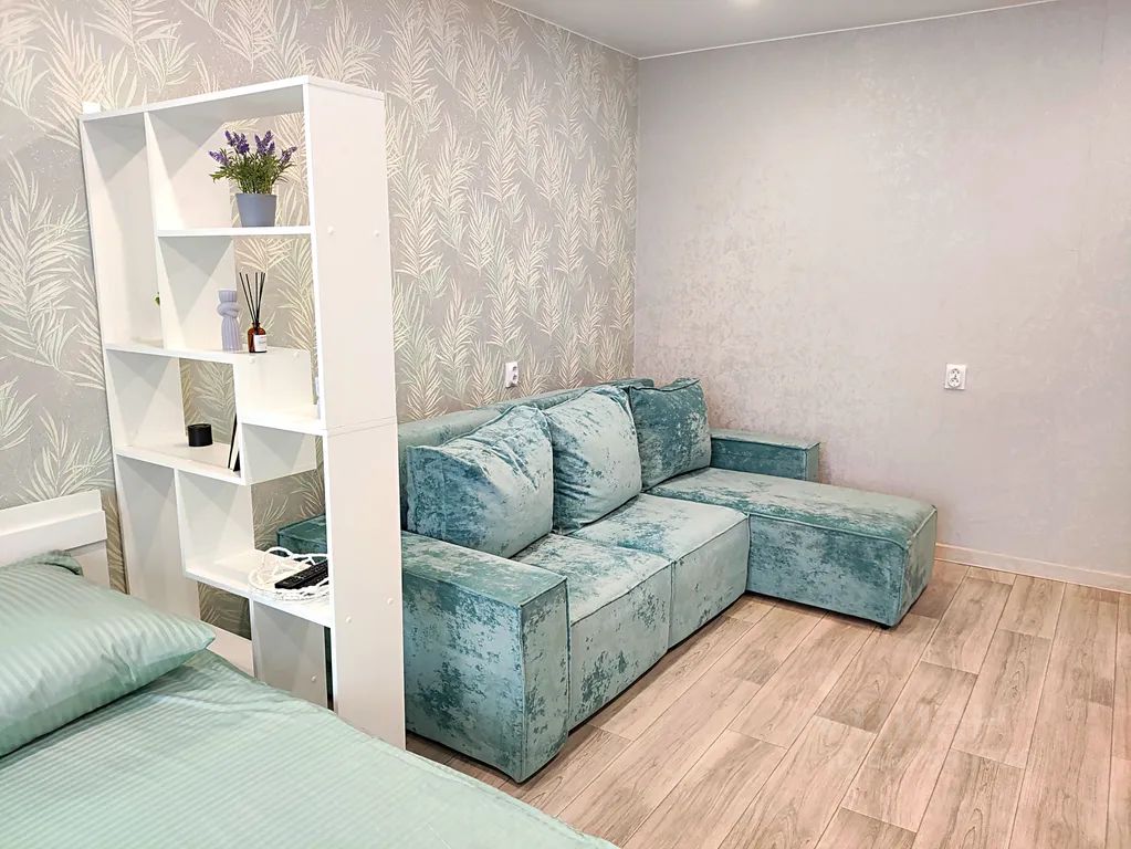 Современная просторная однокомнатная квартира в новом доме в тихом зелёном районе.