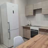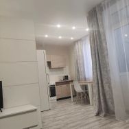 Квартира выполнена в стиле евроремонт, что делает её особенно комфортной для проживания. Просторная студия оборудована всем необходимым: на кухне и в комнате есть мебель, установлены холодильник, телевизор и стиральная машина. В совмещённом санузле располагается ванна. Из окон открывается вид на улицу, а на лоджии можно наслаждаться свежим воздухом.