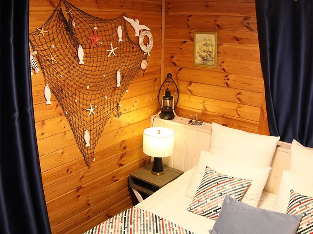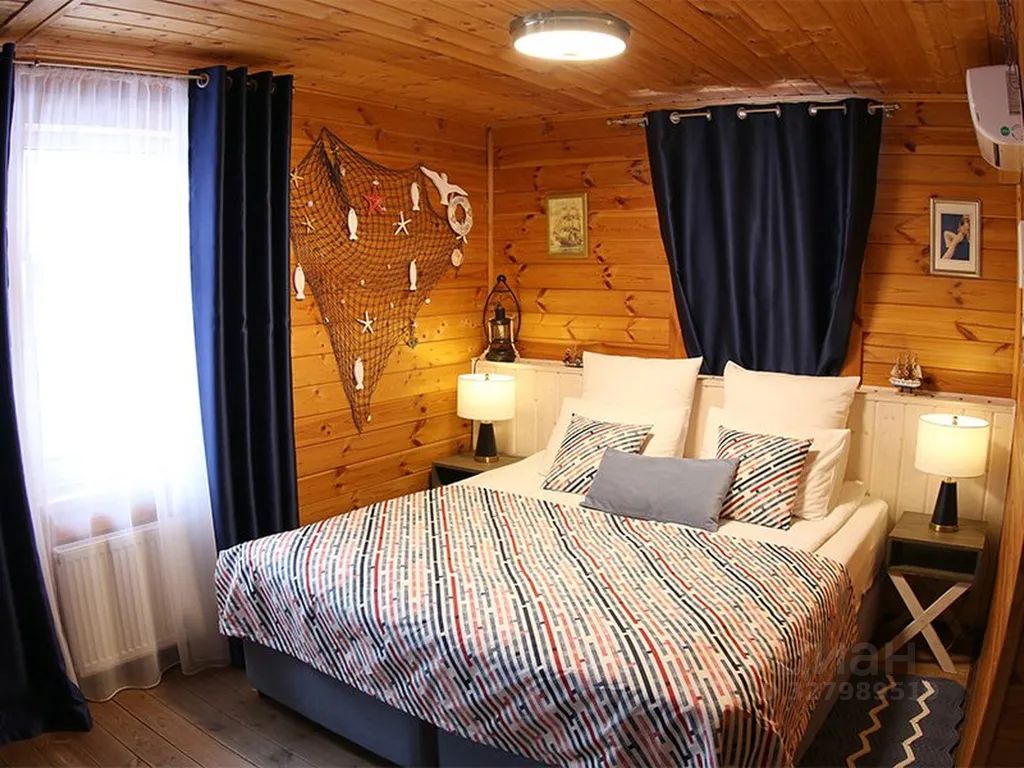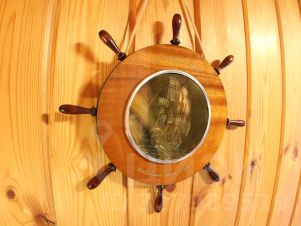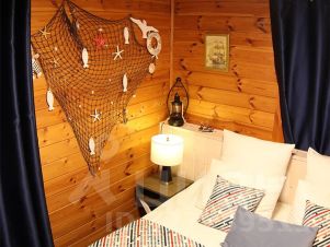 Близость Волги дала идею в декорировании Парусной комнаты: синие тона текстильных изделий, зеркало c багетом в виде каната, парящая белоснежная чайка, а в рыбацкую сеть попала рыба и морские звезды. Попутного ветра для вашего отдыха!