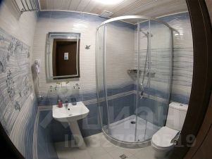 санузел с душевой кабиной и раковиной,