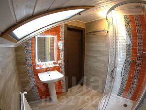 санузел с душевой кабиной и раковиной,