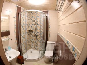 санузел с душевой кабиной и раковиной,
