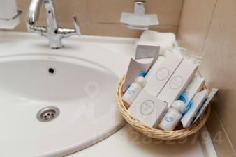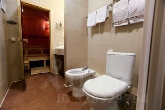 Оснащение санузла: сауна, душ, биде, фен, полотенца, средства гигиены (расширенная комплектация), халат, тапочки.