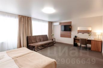 Обновленный, однокомнатный номер площадью 30 кв. м. с двуспальной кроватью и диваном. В номерах имеется балкон, установлены кондиционеры.