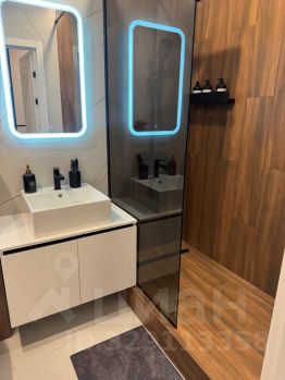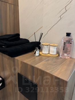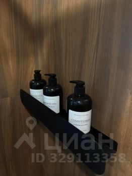 Современная ванная с расширенным набором удобств: ватные диски, ушные палочки, мицеллярная вода, шампунь, кондиционер, гель, мыло, одноразовый зубной набор, фен с насадками.