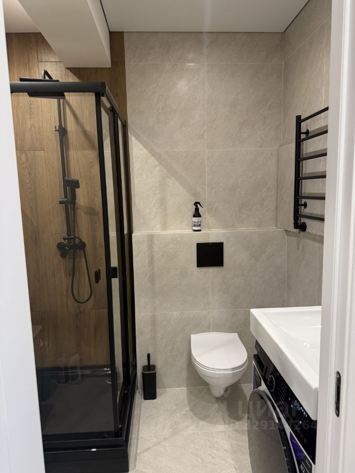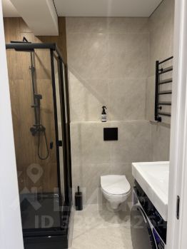 В квартире сделан свежий ремонт, что видно по современному дизайну интерьера и качественным материалам отделки. Санузел совмещенный, выполнен в светлых тонах.