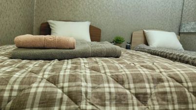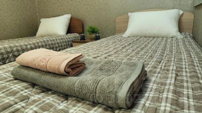 Безупречный сон: Две односпальные кровати с ортопедическими матрасами. Кровати можно сдвинуть в одну большую + удобный диван (спальное место — 1.4 м). Мы подготовили для вас новые подушки, одеяла и хлопковое белоснежное постельное белье из страйп-сатина. Полотенца — мягкие и пушистые.