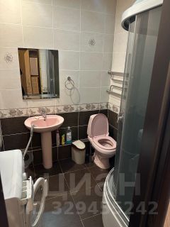Санузел совмещенный, теплый пол. Есть стиральная машинка, душевая кабина, раковина, зеркало, унитаз, урна
