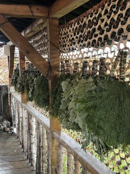 На первом этаже жаркая сауна на дровах , где свободно сядут 6-8 человек, можно поддать на каменку и пройтись веничком. Веники всех сортов - дуб, береза, пихта, эвкалипт , липа , запарки из трав / полынь.
