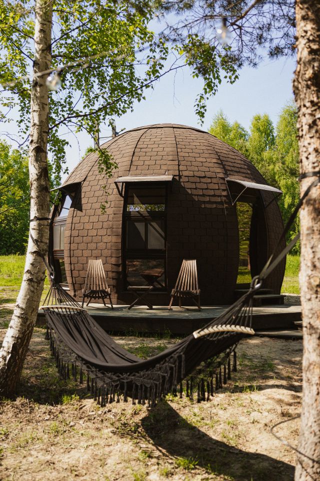 Уникальный купольный дом площадью 36м2, расположенный в лесном массиве на участке 40 соток с Сибирским чаном, мангальной зоной и баней Сканди.
