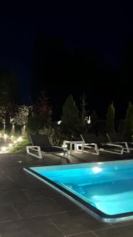 В тёплое время года на территории открыт подогреваемый уличный бассейн с красивой ночной подсветкой