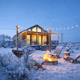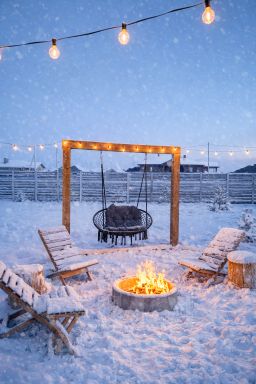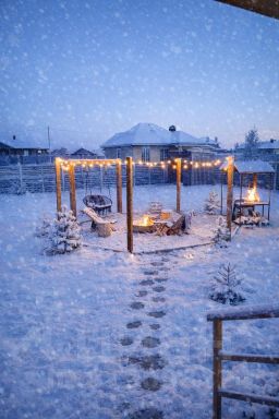 На территории организованная мангальная зона и костровая чаша с садовой мебелью, парковка во дворе.