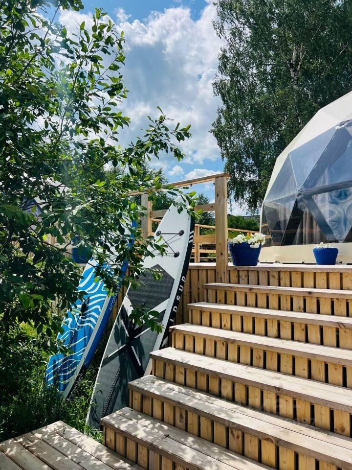 Уникальный купольный дом-сфера общей площадью 38 кв.м. на берегу реки, для размещения до 4 человек.