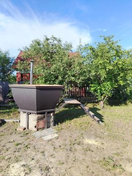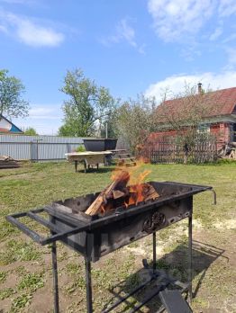 На территории есть мангал с шампурами и казаном