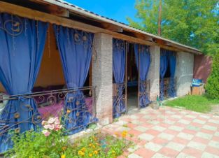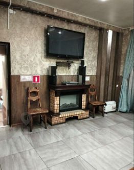 В доме зал с большим столом, небольшая гостиная с кухонной зоной ( эл чайник, холодильник, микроволновка, небольшой набор посуды), комната отдыха, сауна, бассейн 3м на 3м глубина 1,5 м с прохладной водичкой, бильярд 12 фут.