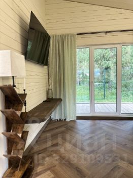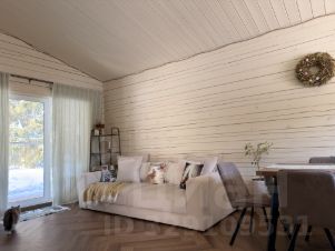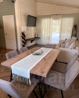 Дом продуман для жизни в любое время года. Его сердце — светлая кухня-гостиная с диваном и большим Smart TV. Но главное украшение — панорамное остекление с прямым выходом на террасу.