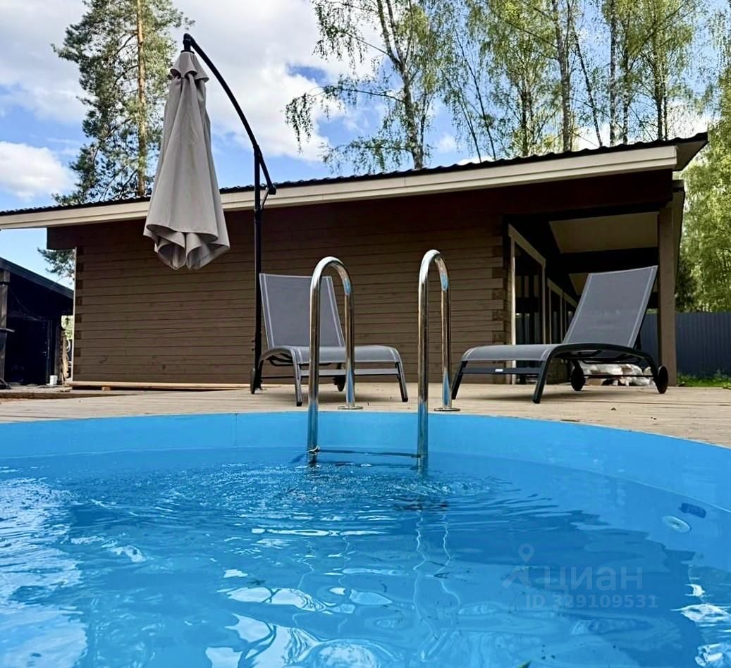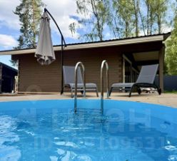 Летний бассейн и SPA-зона на террасе. После бани — окунуться в прохладу бассейна, растянуться на удобном шезлонге под большим зонтом или погрузиться в невесомость гамака. Для полного релакса в доме установлено профессиональное массажное кресло.
