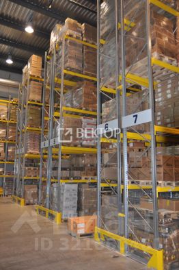 Высота потолков: 10 м до низа конструкций перекрытия, что позволяет использовать многоуровневое стеллажное оборудование.