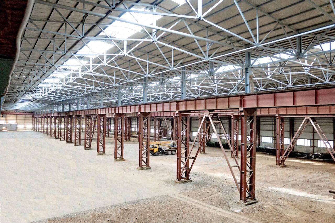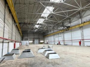 - Производственный цех площадью 50 000 м², состоит из 9-ти пролетов длиной от 192 до 228 м, ширина 24 м. Полы частично уже залиты (6т/м²), антипыль, частично в процессе восстановления. Все пролеты оснащены крановым оборудованием: мостовые краны: 12 шт. грузоподъемностью от 5 до 32т. Высота подкрановых путей составляет 11,5 м.