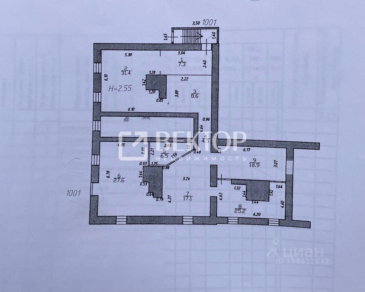-высота потолков 2.5-2.6