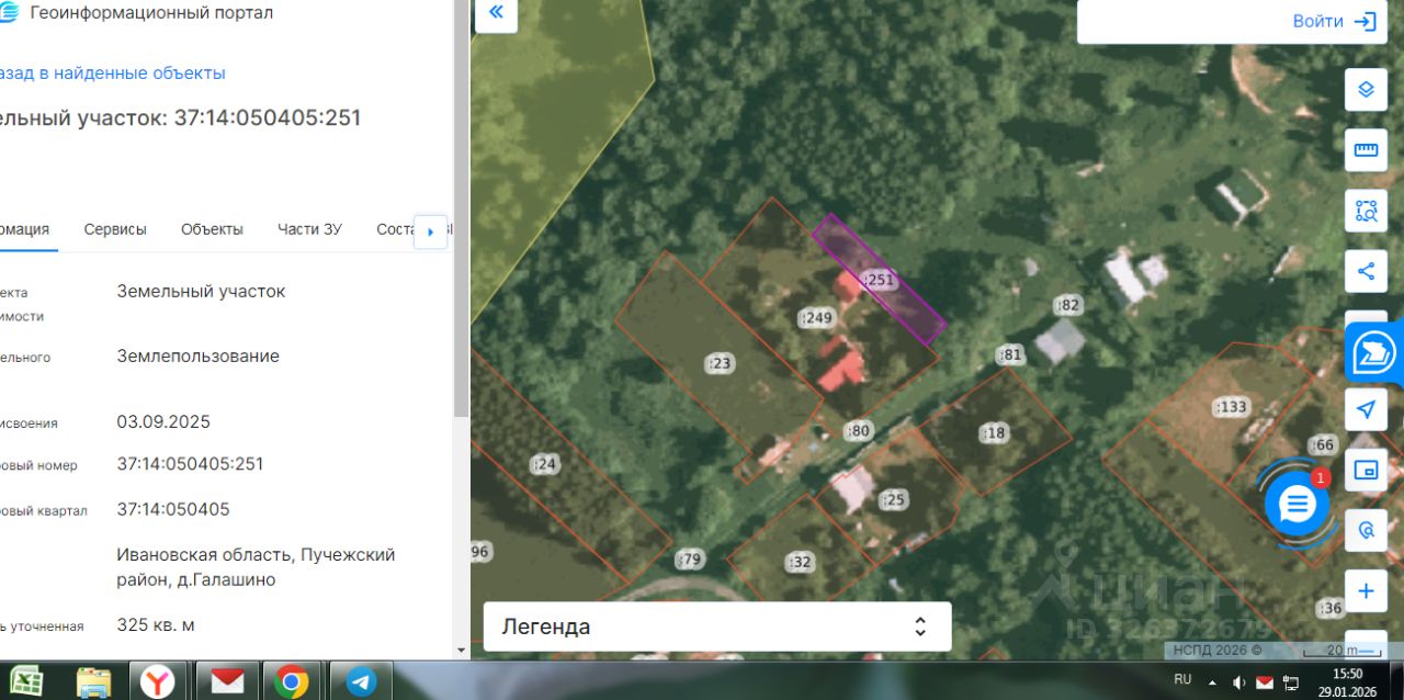 Земельный участок с кадастровым номером 37:14:050405:251 площадь 325 по адресу Ивановская область, Пучежский район, д.Галашино
